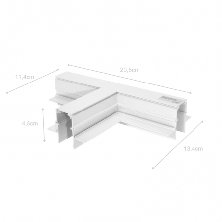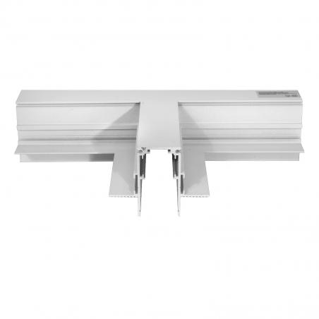 Łącznik "T" do szyn magnetycznych to element, który umożliwia łączenie pod kątem prostym trzech szynoprzewodów magnetycznych. Wykonany z wysokiej jakości aluminium, zapewnia trwałość i odporność na uszkodzenia mechaniczne, co czyni go doskonałym rozwiązaniem w nowoczesnych systemach oświetleniowych. Łącznik jest przeznaczony do łączenia szynoprzewodów podtynkowych, zapewniając estetyczny wygląd.