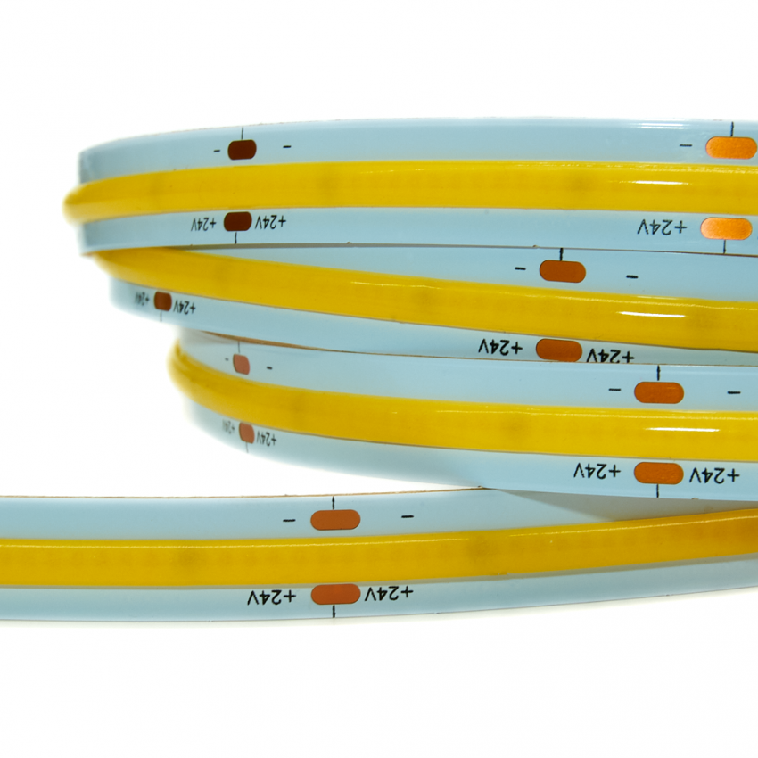 Taśma LED COB (Chip On Board) to nowoczesny rodzaj taśmy LED, w której diody są bezpośrednio montowane na podłożu, w specjalnej warstwie fosforu, tworząc jednolitą linię światła bez widocznych pojedynczych punktów świetlnych. Jest to alternatywa dla tradycyjnych taśm LED SMD, oferująca lepsze właściwości wizualne i użytkowe. Dzięki technologii Chip-On-Board ciepło jest skutecznej odprowadzane do podłoża, co przekłada się na dłużą żywotność.