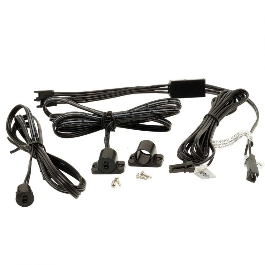 Włącznik sensor załącza obwód elektryczny w momencie otworzenia drzwi szafy i wyłącza go po ich zamknięciu. Urządzenie służy do oświetlenia wnętrza szaf, szuflad, półek, witryn itp. Zasięg wykrywania <5cm. Długość przewodów: 15cm/150cm/100cm (in/out/sensor). Dostępny w dwóch wersjach kolorystycznych: czarnej i białej.