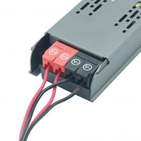 Zasilacz PROVERO ULTRA SLIM przeznaczony do stosowania wewnątrz pomieszczeń. Produkt wykonany został z wysokiej jakości komponentów które zostały umieszczone w solidnej aluminiowej obudowie w kolorze grafitu. Zasilacz przeznaczony do zasilania oświetlenia LED napięciem 24V np. taśm LED, opraw zintegrowanych oraz żarówek. Chłodzenie odbywa się przez swobodny przepływ powietrza przez perforowaną obudowę. Modułowa konstrukcja umożliwia łatwy i wygodny montaż do powierzchni pionowych jak i poziomych. Urządzenie wyposażone jest w funkcję miękkiego startu (SOFT START) umożliwiającą płynne włączanie. Cztery tryby ustawień jasności 25%, 50%, 75%, 100%.